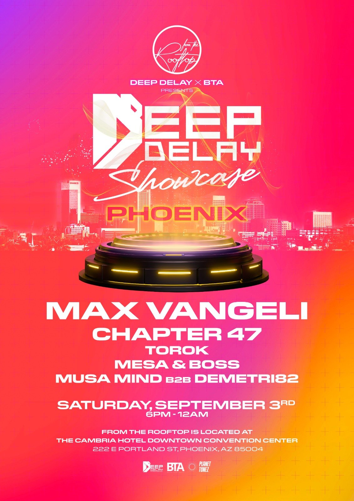 Deep Delay brings another carefully curated Lineup to kick start the Phoenix shows. The team has blended a mixture of electronic artists to give the event participants an unforgettable experience. DJ and House music producer Max Vangeli will headline this action packed event. Max has collaborated with artists such as DJ Tiësto and has played in the best festival slots in the world, like EDC Las Vegas.